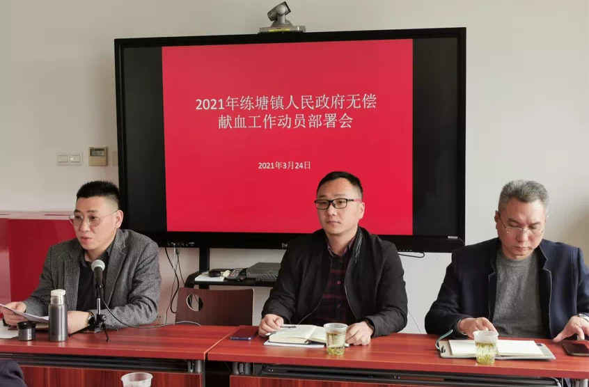 为确保团体无偿献血活动顺利开展,练塘镇人民政府于3月下旬召开2021年无偿献血工作动员会,会上要求各部门积极组织配合,分批、分流进行无偿献血,保障无偿献血工作稳定、健康地发展。青浦区血站副站长高轩业、练塘镇社发办主任叶洲、爱卫办主任蒋辉出席会议。