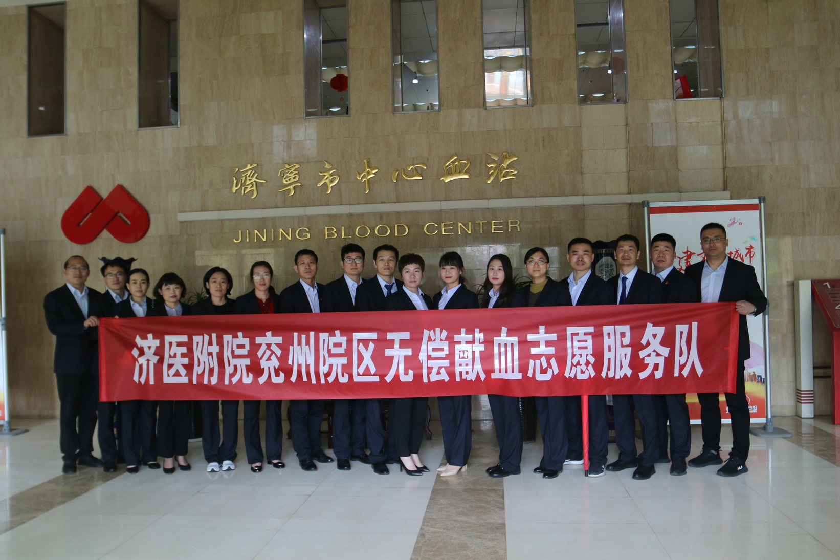 4月20日,由17名党员及中层干部组成的济医附院兖州院区无偿献血志愿服务队来到济宁市中心血站开展无偿献血活动,共捐献全血1600毫升,成分血11个治疗量,以实际行动诠释了医务工作者“救死扶伤、甘于奉献”的大爱精神。