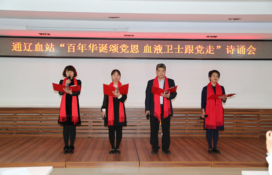 为庆祝建党百年,推动党史学习教育,血站于4月23日“世界读书日”开展了“百年华诞颂党恩 血液卫士跟党走”诗诵会。