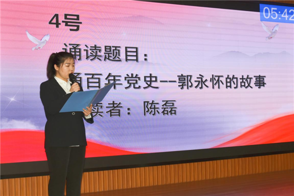 活动中,来自血站各科室的15位参赛者们在优雅音乐背景下,慷慨激昂、声情并茂,以诵读的形式礼赞了中国共产党百年光辉历程和伟大成就,缅怀了壮烈牺牲的革命烈士,歌颂了忠诚与担当的新中国建设者和新时代奋斗者,激发了在场所有人员强烈的爱党、爱国主义情感。