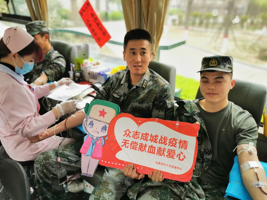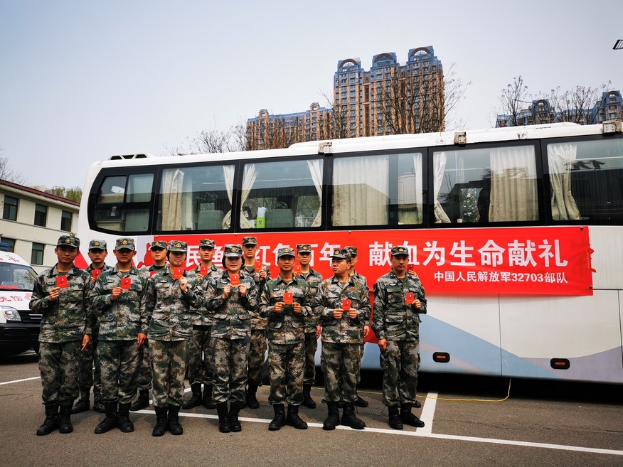 中国人民解放军32703驻地部队在得知血液中心血液库存不足的情况下,积极动员官兵参与献血,奉献爱心,在郑政委,赵主任和王营长的带动下有52人奉献爱心。