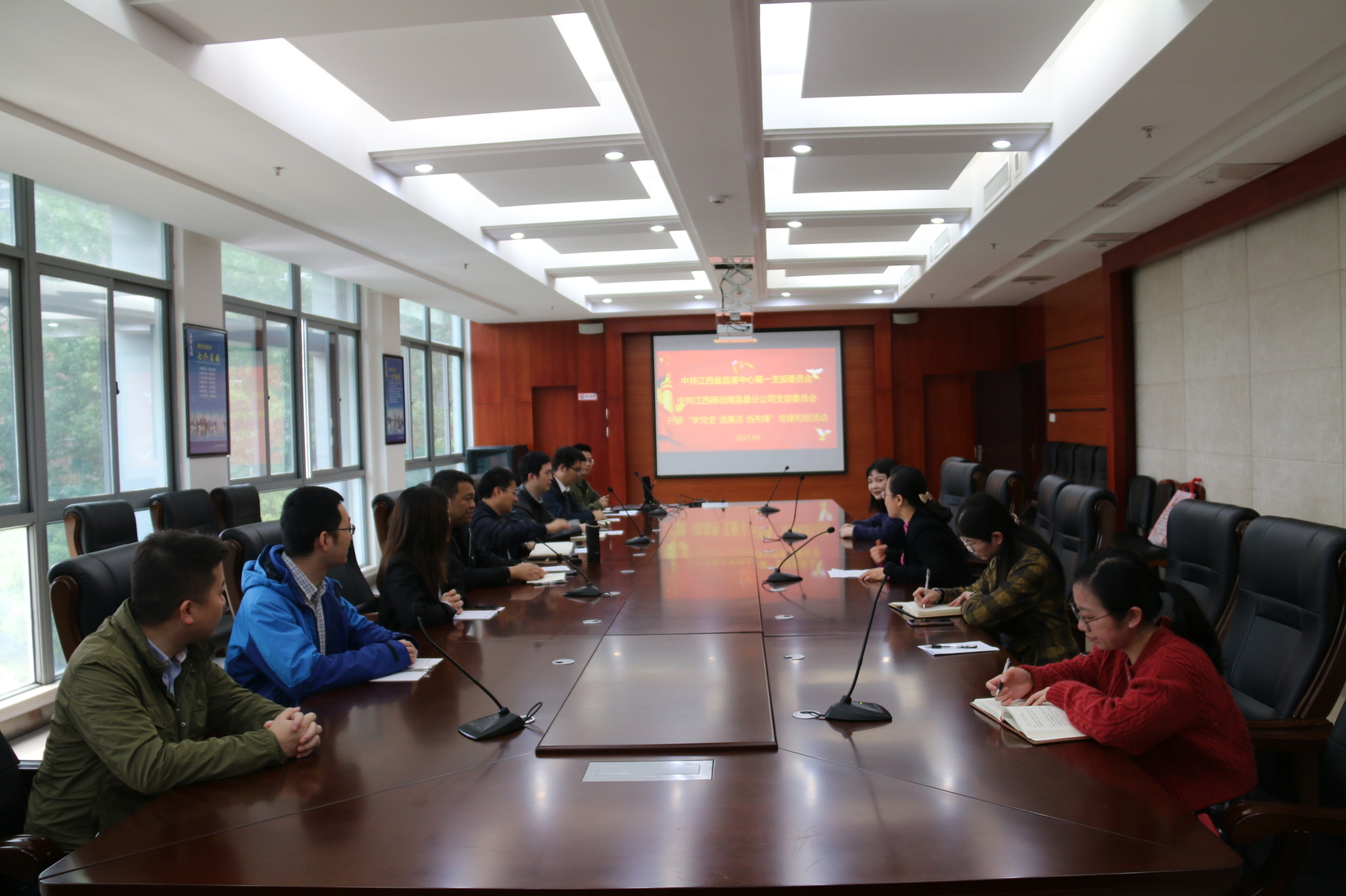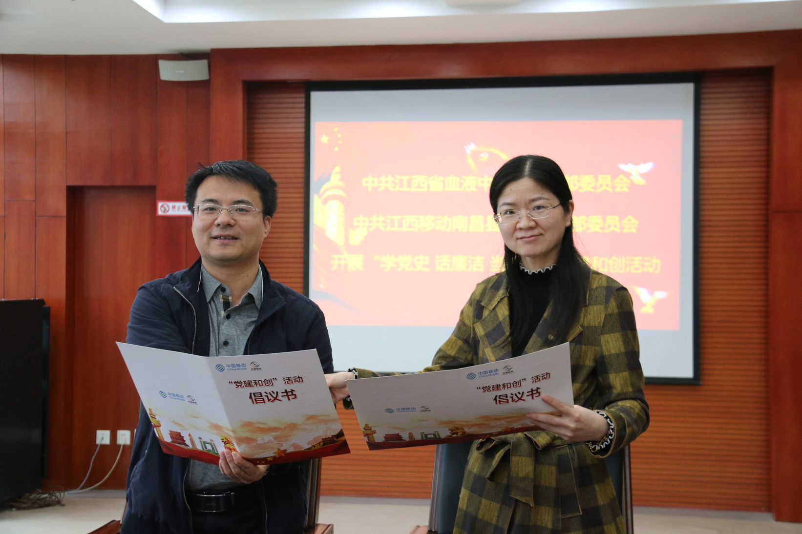 2021年4月28日,江西省血液中心与江西移动南昌县分公司联合开展了以“学党史、话廉洁、当先锋”为主题的党建和创活动。活动在省血液中心开展,以共建共享为基础,以合作共赢为目的,旨在加强合作交流,促进党建与业务融合。江西省血液中心党委书记、副主任李秀珍、江西移动南昌县分公司党支部书记、总经理杨文平参加活动仪式。