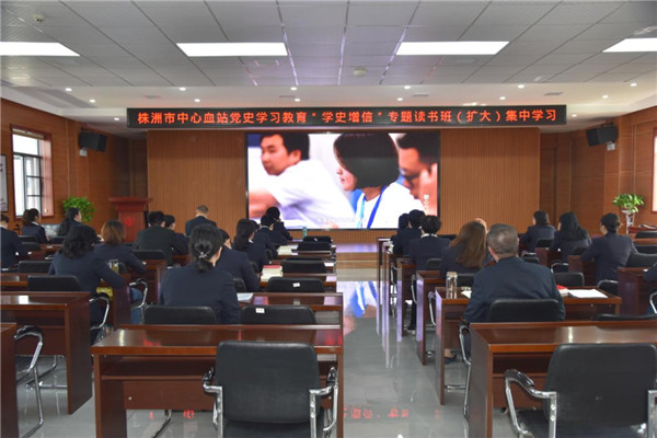 4日21日-25日,株洲市中心血站党总支举办为期五天的党史学习教育“学史增信”专题读书班(扩大),通过党员个人自学、集中学习研讨、红色经典诵读、谈读书体会、参观市博物馆、观看廉政警示教育片等方式,掀起党史学习热潮。全站党员干部、入党积极分子、入党申请人、团员代表近50人参加读书班。