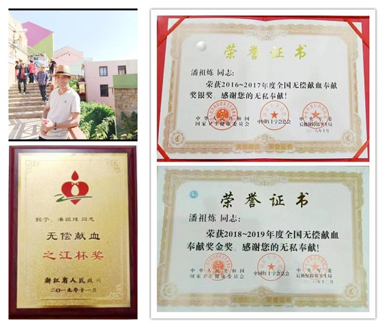 今天和大家分享一位“泥水匠”——潘祖炼的爱心献血故事,“潘师傅”从2014年开始献血,在8年不到的时间里,共献血84次、献血量29800毫升,其中机采血小板80次、28200毫升。多次荣获全国无偿献血奉献奖、浙江省无偿献血之江杯奖等荣誉,按平均计算每年捐献次数多达10余次,到底是什么信念支撑着他呢,让我们一起来了解这位平凡而又不同凡响的“泥水师傅”。