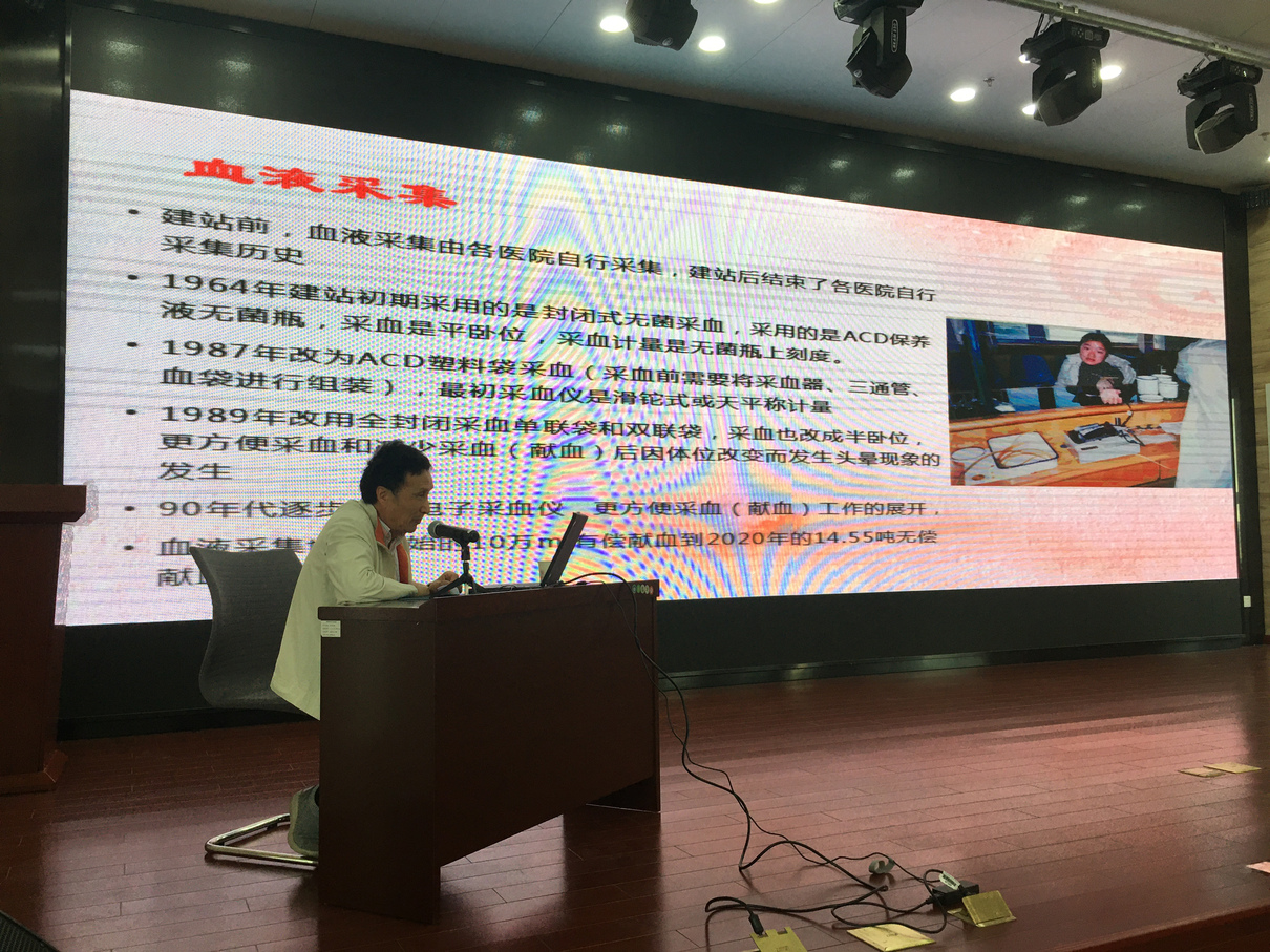夏永建同志1988年进入血站,时任南通市中心血站副站长,分管采供血业务及质量管理工作,于2017年退休。他用朴实的语言结合亲身经历与感受为同志们讲述了血站50多年的艰苦发展创业历史。一个个感人的故事背后承载了历代血站人的心血与付出。