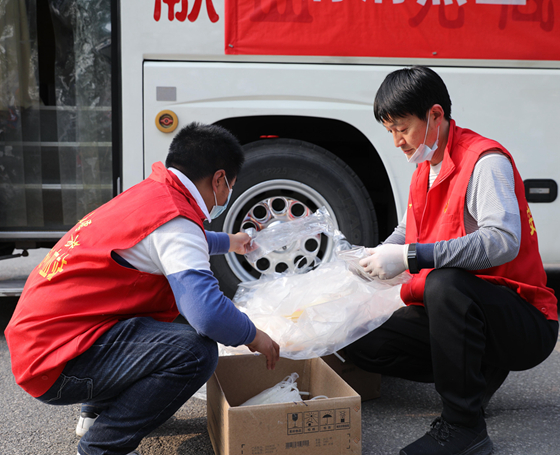 采血现场还有一群特殊的志愿者,他们身穿红马甲穿梭在采血活动的每个现场,有的在为排队献血的同学讲解献血前注意事项,有的在采血车上给紧张的献血者加油打气,有的在帐篷下面为献血学生发放纪念品,还有的在帮着给学生做采血后护理等等,跑前跑后忙个不停。虽然连续四五个小时的忙碌让他们疲惫不堪,但每个人都毫无怨言,因为他们是自觉来参加志愿服务的党员干部,包括几位站领导也是志愿服务中的一员。绚丽的晚霞映照在他们身上,笑容格外灿烂,胸前的党徽也格外耀眼。