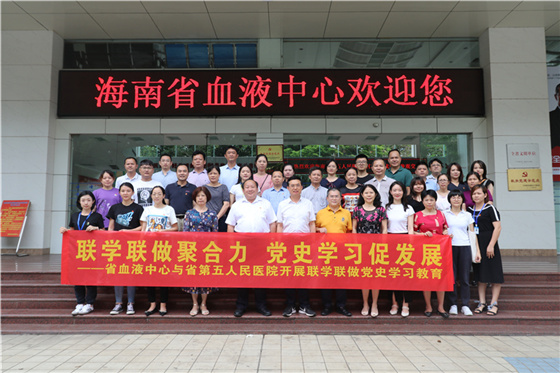 党史学习促发展,联学联做聚合力 ——海南省血液中心、省第五人民医院开党史学习教育联学联做活动