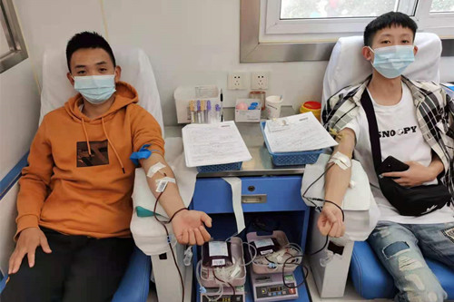 当天,在时代广场移动爱心献血屋内,李鹏飞和舒晓杰相约而来,两位20岁出头的小伙子在志愿者的指引下,顺利完成了人生的首次献血。