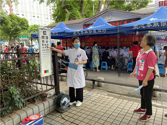 为深化开展党史学习教育,把“我为群众办实事”活动落实落细,不断强化青年医务人员的服务理念,进一步增强公众的疾病防范意识,“五一”国际劳动节当天,海南省血液中心团委联合海南省安宁医院、海南省眼科医院、海南省第五人民医院、植牙口腔等医疗机构,在海口明珠广场爱心献血屋前开展“学党史见行动 迎五四办实事”青年医护爱心义诊主题活动。