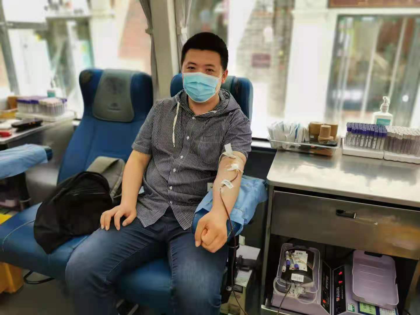 洛阳报业集团记者王博东多年来持续关注卫生健康及无偿献血事业发展,所采编的许多与之有关的报道、文章多次在洛阳日报、洛阳晚报等当地主流媒体刊发,取得良好的社会效果,为助推洛阳无偿献血工作做出了积极贡献。这是近日该名记者在洛阳一采血屋采编采无偿献血工作访间隙,身体力行、带头参加无偿献血是的画面。