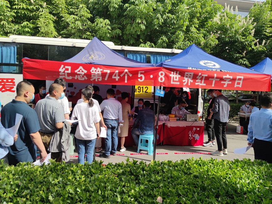 5月8日,在第74个世界红十字日到来之际,为弘扬奉献精神,庆祝建党百年,由河南省委直属机关工委、省红十字会、省卫生健康委联合举办,河南省红十字血液中心承办的以“献热血爱心,庆建党百年”为主题的省直机关无偿献血暨造血干细胞捐献志愿者招募活动在郑州启动。活动以省政府综合办公楼院内为主会场,在省直机关纬二路综合办公区、河南饭店会议中心设立分会场。省直工委副厅级专职委员赵茂军、省红十字会党组书记、专职副会长万英,党组成员、二级巡视员郭巧敏等领导同志看望慰问参加献血和造血干细胞血样采集的干部职工。