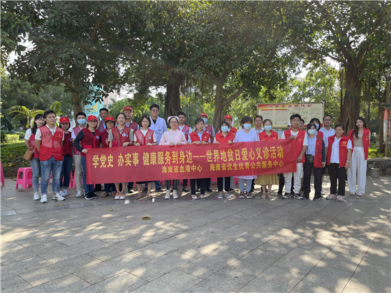 2021年5月8日是第28个“世界地贫日”,为扎实推进党史学习教育走深走实,深入开展“我为群众办实事”实践活动,努力践行社会主义核心价值观,普及优生优育、地贫防控知识,倡导无偿献血,营造全社会重视地贫防治、关爱地贫儿的良好氛围,5月8日下午,省血液中心、省优生优育公共服务中心组织20余名党员志愿在海口市秀英区水云天小区开展世界地贫日爱心义诊暨无偿献血宣传志愿活动。