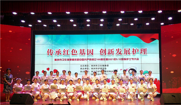 5月10日,在株洲市庆祝中国共产党成立100周年暨2021年5.12护士节大会上,我站血源体采室被授予“优秀护理团队”荣誉称号,彭雪飞被授予“优秀护士”荣誉称号。