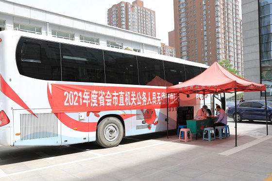 时值5月,已是烈日炎炎,石家庄市委、市政府大院楼前停靠的采血车格外醒目,填表、体检、化验、献血……公务人员井然有序的奉献着热血。