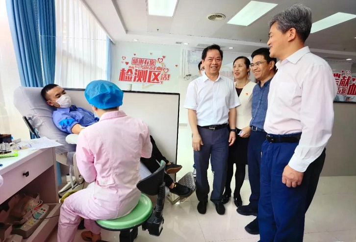 ▲福建省政协副主席阮诗玮看望慰问献血者