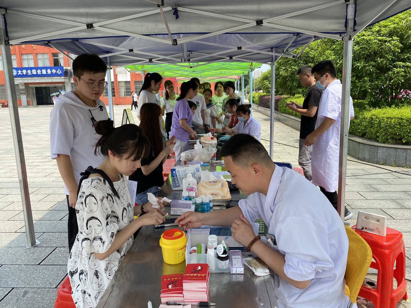 今年是中国共产党建党100周年,南昌师范学院积极响应江西省卫健委、江西省教育厅、共青团江西省委在全省高校开展“奋斗百年路,热血铸青春”无偿献血活动的号召。发扬党员干部群众无私奉献的精神,弘扬中华民族团结互助、友爱、乐于助人、救死扶伤的光荣传统。5月10日至14日,南昌师范学院校团委青年志愿者协会联合江西省血液中心,在博学广场开展了为期4天以“奋斗百年路,热血践初心”为主题无偿献血志愿活动,并倡议全校教工党员、学生党员、入党积极分子、学生干部、团员、团干、群众等应积极参与无偿献血,充分发挥先锋模范作用。此次活动全校共有师生800余名志愿者参与,掀起了一场无偿献血的爱心热潮。
