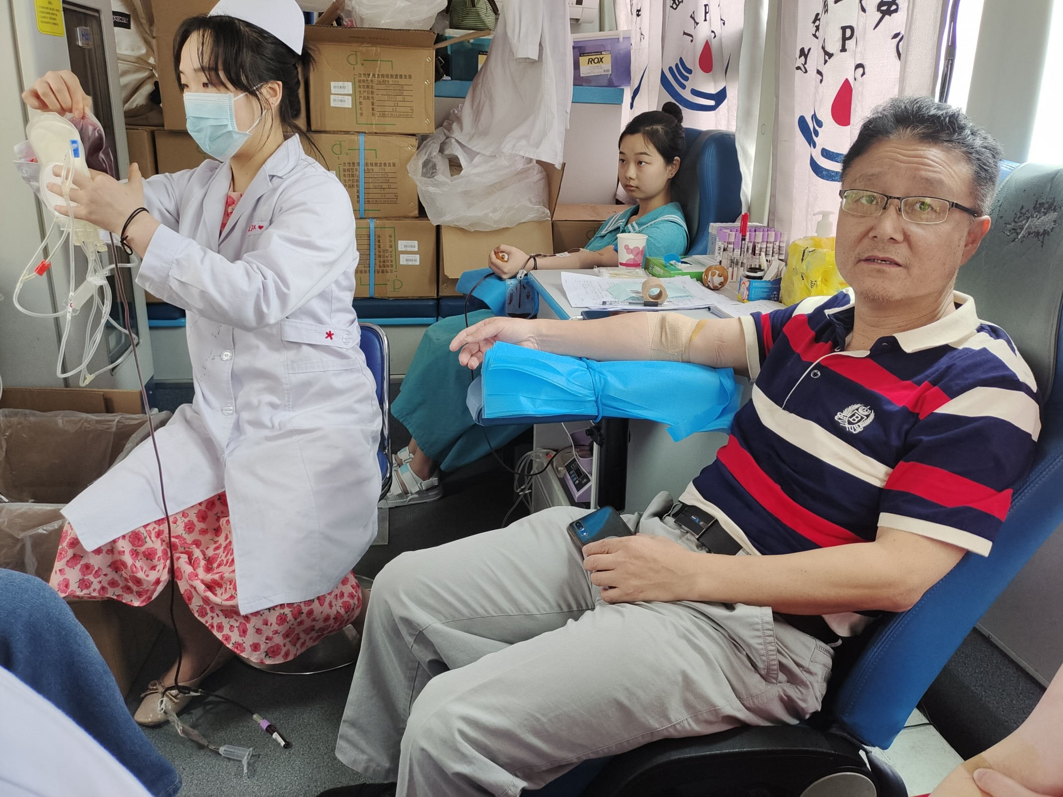 活动当天,省血液中心“小黄鸭”主题献血车如期而至,志愿者在血液中心工作人员引导下,按照要求填写采血表格、测血压、验血型等。前来献血的志愿者中,有部分是第一次献血,第一次领到了《无偿献血证》,喜悦和光荣洋溢在她们的笑脸上。