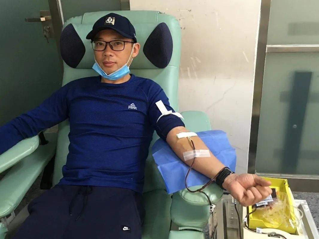 至今薛涛大哥已累计献血35次,献血量9400ml,其中捐献血小板34次,45个治疗量。薛涛大哥不仅自己坚持献血,还积极影响和带动身边的亲人、跑友、同事参与公益,加入无偿献血队伍,传播爱心正能量。