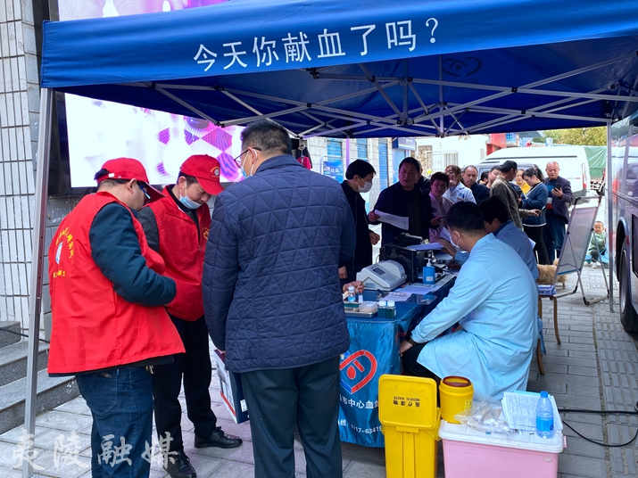 近日,夷陵区下堡坪乡政府门口献血的志愿者排起长龙,填登记表、量血压、测血型,大家纷纷撸起袖子,献出热血,短短一上午,83名爱心志愿者共献血27800ml。