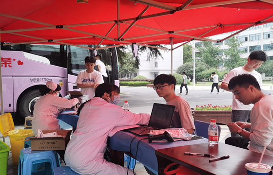 献血车刚停下车,前来参加献血活动的同学们就排起长队。根据疫情防控要求及报名献血人数,现场实行错时组织同学分批次进行献血。学校的志愿者们积极配合我中心医务人员,依次开展填表、量血压、化验、个人信息登记、献血等工作,献血过程中井然有序。