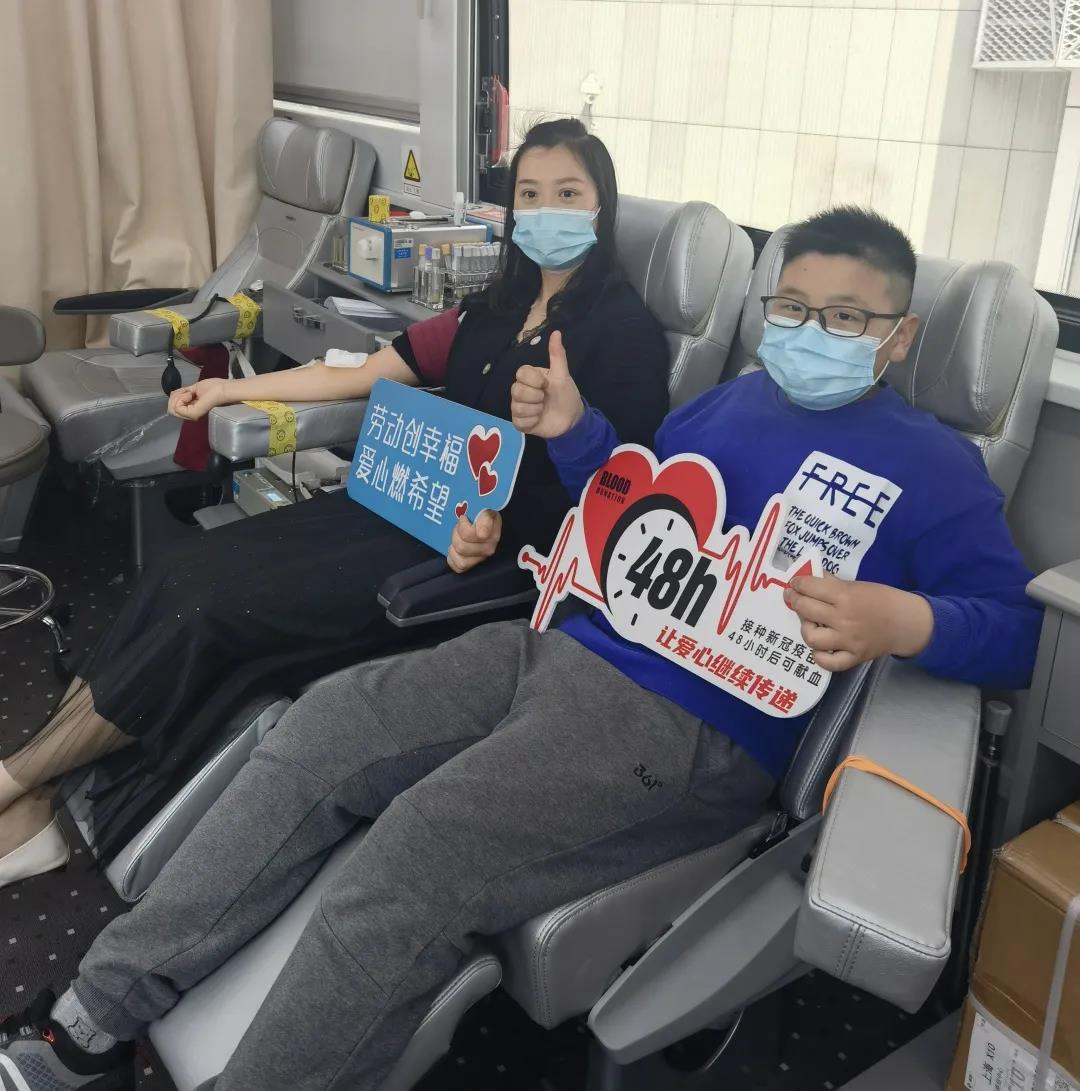 五一当天,曾获全国无偿献血奉献奖银奖的长宁老一辈的志愿者宣传招募服务队队长李俊锋先生第一个登上爱心献血车,毫不犹豫捐献了400ml热血,他儿子也来到了现场为爸爸鼓劲加油。随后他直接加入了无偿献血志愿者招募的队伍,展示了言传身教的榜样力量。