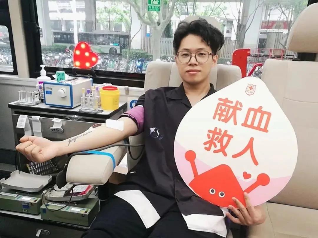 正在无偿献血的郭茂龙,是一位“新上海人”。他说,自己曾在安徽老家参加过两次无偿献血,这次是他来上海工作后的第一次无偿献血。“感觉挺荣幸的,又正好是‘520’,所以我想以无偿献血的方式,向上海这座城市表白。”