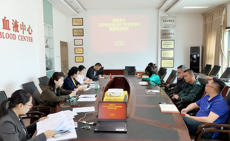 5月20日,省血液中心第三党支部召开党员大会,就习近平总书记在广西考察期间的重要讲话精神进行专题学习。