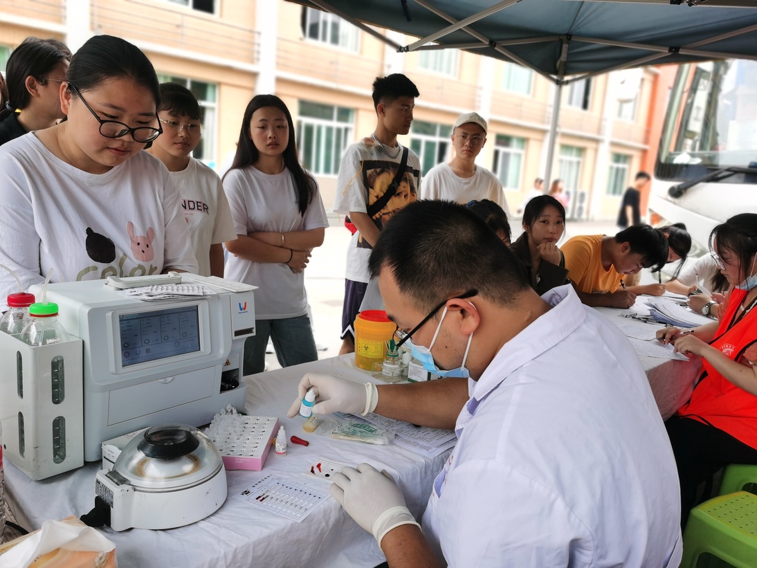 据悉,宜宾职业技术学院现有在校学生8000多名,本次主题为“血脉继相承、爱心永流动”的献血活动,从5月12日正式拉开序幕。让人始料未及的是,在献血活动的第一天,校园里就有着不同往日的风采,300多名学生撸起袖子,奉献出了自己的爱心和热血。“即使害怕,但依然勇敢”,“因为,我们是宜职学子”,“我们是5月的花环,要用青春和热血去点亮未来”,“只有把小我融入大我,才会有海一样的胸怀,山一样的崇高”……。一个个洋溢着青春、激情和正能量的短视频在校园里转发之后,更引起广大师生强烈的共鸣和积极响应。5月13日,参加献血的学生超过400人,5月15日,参加献血的学生超过了500人。据本次献血活动的组织者冯奥兰、邹国兴介绍:在上千名参加献血的学生中,80%以上都是第一次参加献血的志愿者。虽然绝大多数都是第一次参加献血,但他们早就有参加献血的良好愿望。心动不如行动,虽然是第一次参加献血,内心多少都有一些畏惧,但献完血后,他们都感到非常坦然!“燃烧自己,奉献社会,照亮他人”是宜宾职业技术学院献血志愿者们发出的共同心声。