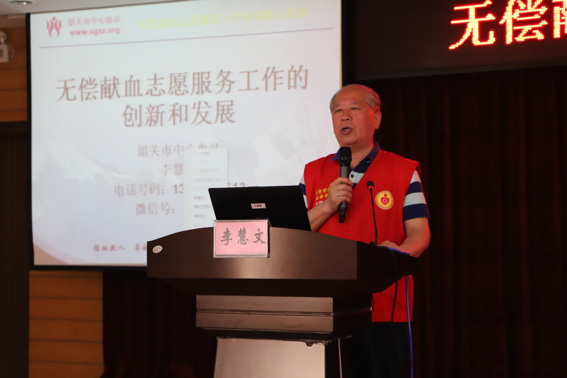 韶关市中心血站志愿组织协调办公室主任李慧文给大家讲解了《无偿献血志愿服务工作的创新与发展》,详细介绍如何建立一支无偿献血志愿服务组织,培训和引导队员参与无偿献血的宣传、招募、保留和召回等志愿服务活动,保障无偿献血工作健康持续发展的理想模式,实现全社会共同推动无偿献血活动发展等内容,李主任作为国内无偿献血志愿服务的领头羊并身体力行的事迹也获得了与会学员雷鸣般的掌声肯定。