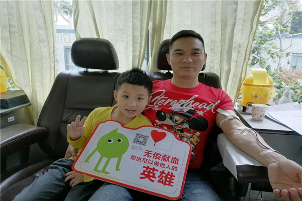茶陵县虎踞镇双芫村尹永平特意带上儿子来到献血屋参加献血,尹永平说道:“去年疫情,我刚好在家乡,献上了一份血液为疫情加油;今天我刚从佛山回来,特意‘故地重游’再为患者同胞送上一份希望。”