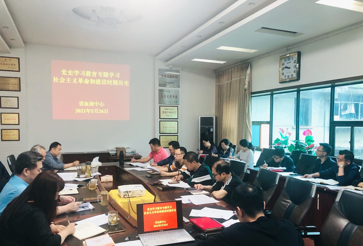 5月26日,省血液中心举行党委中心组第2季度集中学习研讨暨5月学习会,围绕“社会主义革命和建设时期历史”进行专题学习,并结合实际进行交流讨论。