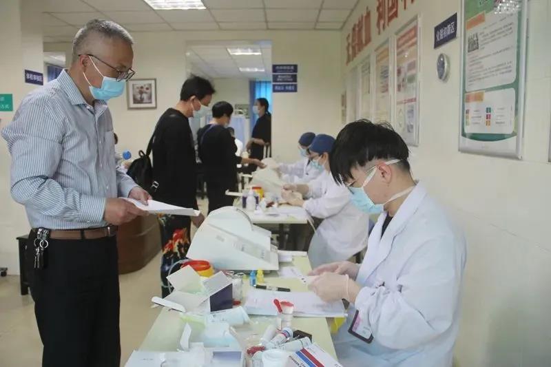 早晨七点,血站工作人员已陆续到位,做好相关的准备工作。随后,第一批无偿献血者佩戴好口罩,测量体温、展示随申码、填写无偿献血个人信息表、量血压、化验初筛、无偿献血...都井然有序地配合工作人员完成疫情防控期的标准流程。