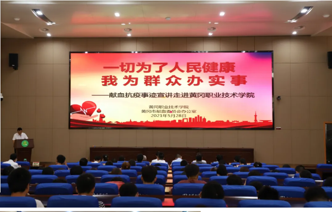 为积极引导当代大学生弘扬志愿精神,投身社会公益事业,为促进社会发展作出更多贡献,5月28日在黄冈职业技术学院教师发展中心举行了“一切为了人民健康”黄冈市献血抗疫走进高校宣讲会。市献血办主任、市卫健委副主任张凯,黄冈职院党委委员、工会主席、宣传部部长郑柏松,学生工作部(处)部(处)长熊楚舒,团委书记崔现强,市献血办副主任、市中心血站站长彭德峰,副站长何争荣出席活动。黄冈职院校学生会、校团委、校青协等群团组织,各学院、各班级学生骨干一百余人参与了本次活动。