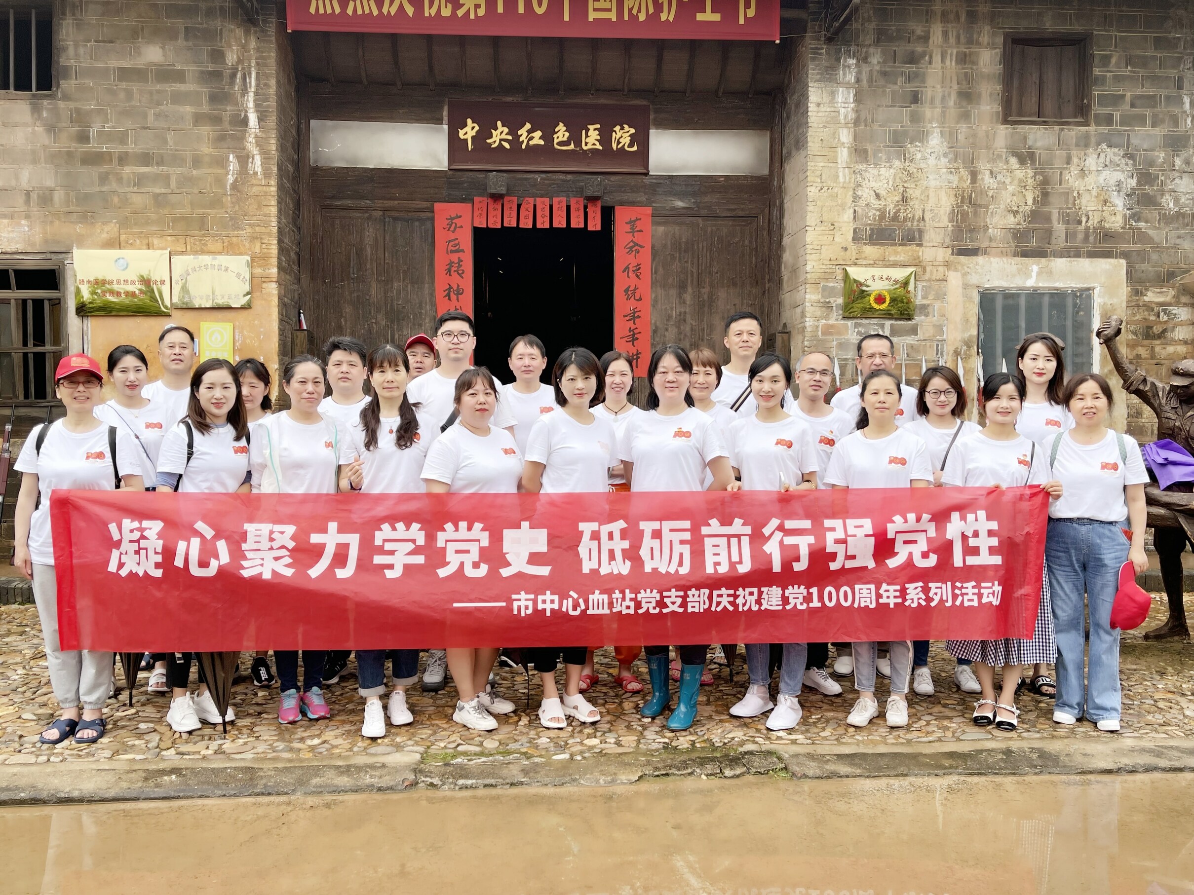 随后参观了沙洲坝中华苏维埃共和国临时中央政府旧址和沙洲坝红井等革命根据地。在中央红色医院,血站党员们以微党课的形式,重温南丁格尔精神、苏区精神和“红医”精神,聆听毛主席和傅连璋院长的革命故事,学习老一辈工农红军军医的高尚医德,聆听老一辈医务工作者的英雄事迹。进一步提升职业荣誉感和使命感,增加职业自信心。