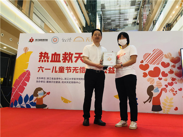 为了让更多人了解、关心、帮助这些特殊的孩子们,5月29日,由浙江省血液中心、浙江大学医学院附属儿童医院主办,戴维贝拉童装公司、杭州天虹购物中心协办的“热血救天使”六一儿童节无偿献血公益活动在杭州天虹购物中心举办。