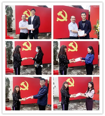 走出故居陈列馆,大家现场瞻仰了革命先烈王若飞同志的塑像。“我志愿加入中国共产党,拥护党的纲领,遵守党的章程,履行党员义务,执行党的决定......”随后,两个支部全体党员手举右拳,面朝鲜红的中国共产党党旗,重温入党誓词,回忆入党初心。最后,两个支部的6名党员同志在活动现场过了一个既难忘又有意义的“政治生日”。