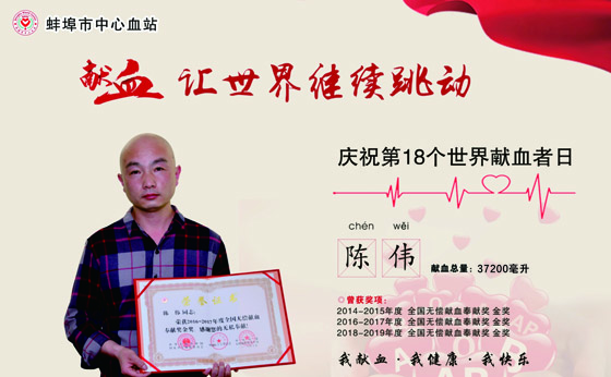 赠人玫瑰,手有余香,当和陈伟说起自己第一次献血的事,他回忆了一下,有些不好意思。2010年的一天,他途经蚌埠百货大楼,看到血站缺血的通知后,就直接走上了献血车。“以前经常看到血站的献血车停在那里,有老百姓经常上去献血,我就感到很好奇,不知道献血是什么样,也一直没有机会,那次就鼓起勇气尝试了一下。”陈伟说,“第一次献血时的确有些紧张,手心都被攥出汗来了,采血护士就通过聊天来缓解我的紧张情绪,渐渐地我逐渐适应了采血的过程,身体也没有感觉到任何不适。等看到热乎乎沉甸甸的血袋装满时,一种自豪感不断地在胸膛涌动。”