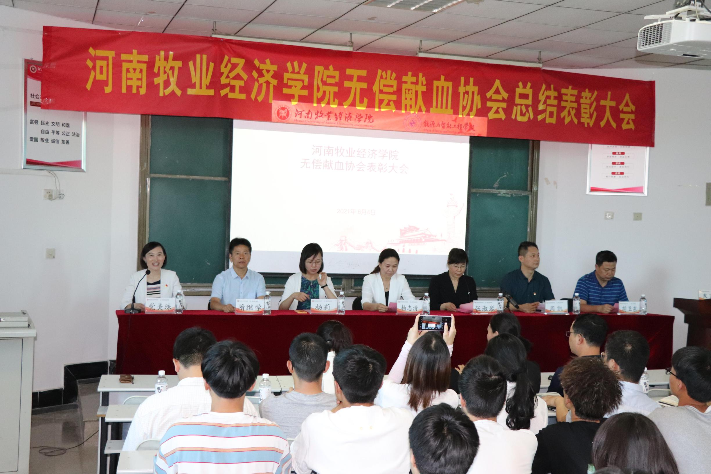 2021年6月4日,河南牧业经济学院无偿献血工作表彰大会在北林校区教学楼会议室举行。河南牧业经济学院副校长杨志清、团委书记杨莉、能源与智能工程学院党委书记周凯、学生处副处长胡卫东、河南省红十字血液中心副主任张淑琴等领导出席会议。