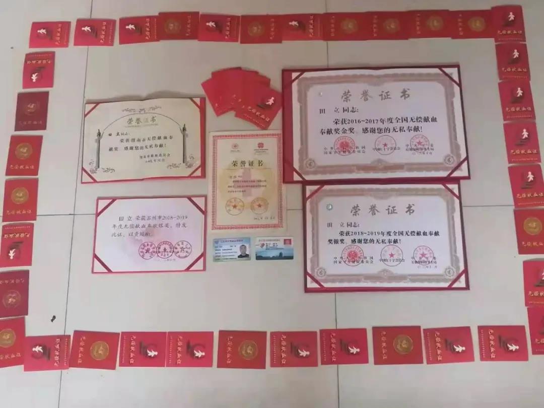 田立是一个普通的农民,从2005年5月26日第一次捐献血200毫升全血,16年了,无论刮风、下雨,还是农忙,他一直默默坚持着这漫长而又幸福的无偿献血之路。田立持之以恒坚持了多年的善举得到了肯定,他先后获2009年度渭南市无偿献血奉献奖、获2016-2017年度全国无偿献血奉献奖金奖、获2018-2019年度全国无偿献血奉献奖银奖。
