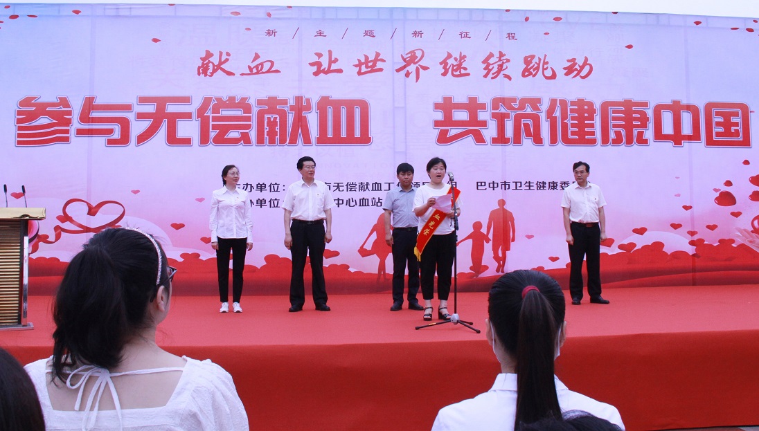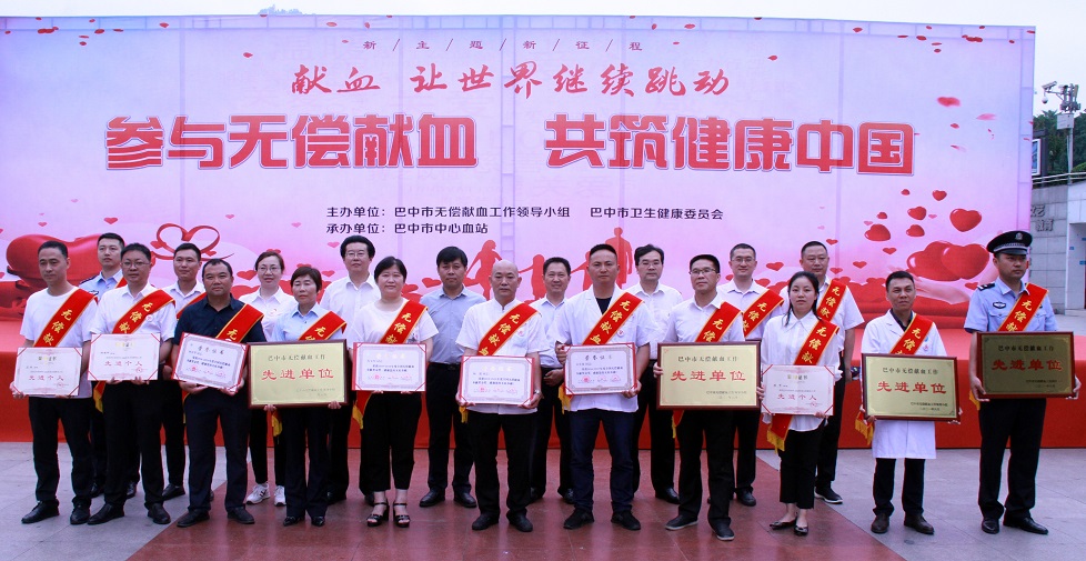 巴中市献血者日宣传活动此次活动由市政府副秘书长梁高主持。出席领导为2018至2019年度“全国无偿献血奉献奖金奖”获得者代表、巴中市无偿献血先进集体及先进个人代表颁发了荣誉证书和奖牌。全国无偿献血奉献奖金奖获得者肖艾军及先进单位巴中市民政局分别做了交流发言。
