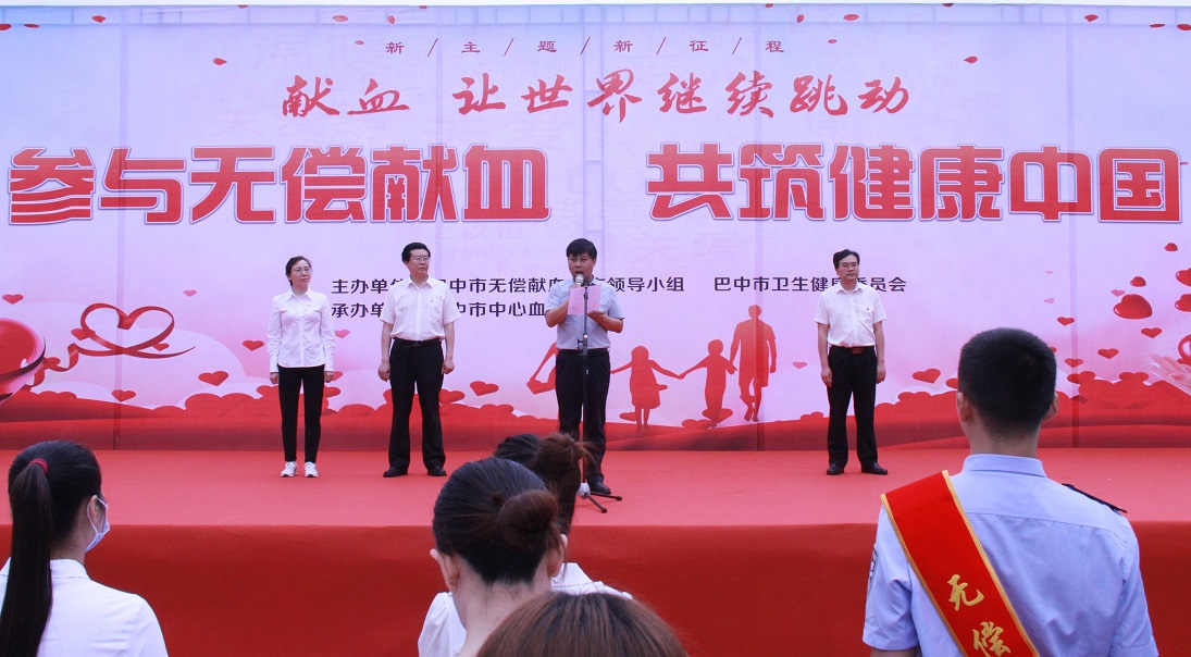 6月10日上午,巴中市开展了“献血,让世界继续跳动”世界献血者日宣传活动。市委常委、副市长陈军波,市卫生健康委党组书记、主任佘晓东,市卫生健康委党组成员、副主任罗友军,市中心血站站长黄腊梅出席。市区无偿献血领导小组成员单位代表、医务人员代表、人民警察代表、无偿献血者及志愿者代表等300余人参加此次活动。