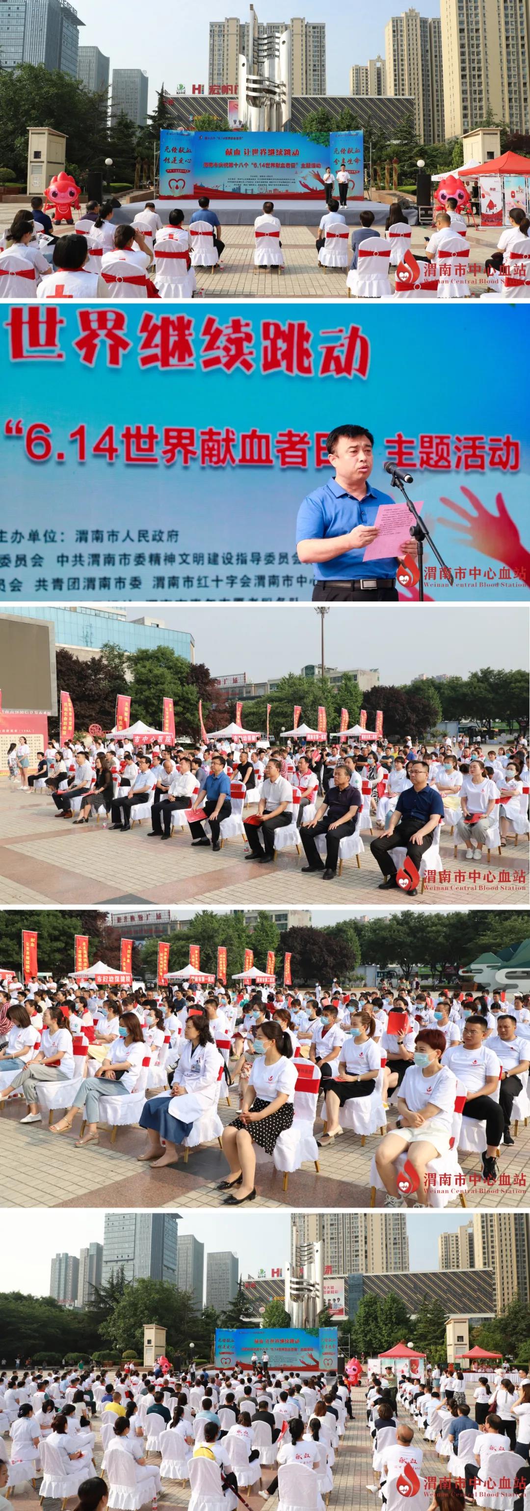 今年6月14日是第18个“世界献血者日”,主题是“献血,让世界继续跳动”。6月10,由渭南市人民政府主办,渭南市卫生健康委员会、中共渭南市委精神文明建设指导委员会办公室、中共渭南市直属机关工作委员会、共青团渭南市委、渭南市红十字会、渭南市中心血站承办的渭南市庆祝第18个“6.14世界献血者日”主题宣传活动在渭南市中心广场举行。