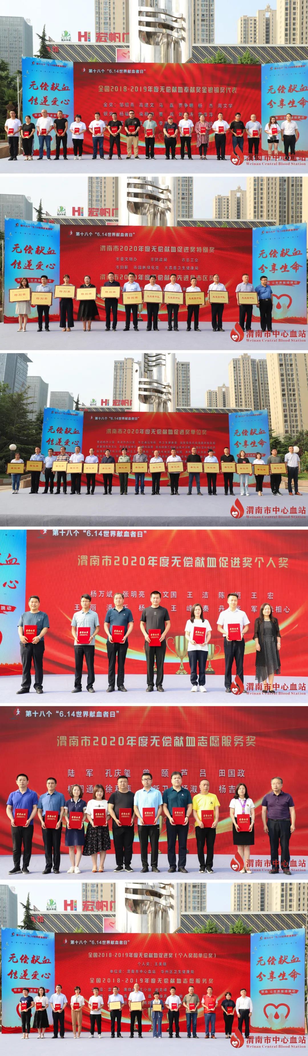 近年来,在全市各级党委、政府的高度重视和社会各界的支持下,越来越多富有爱心、热心公益的民众融入到了无偿献血者队伍,我市无偿献血事业取得进步和发展,无偿献血精神深入人心,志愿者队伍不断壮大,采供血机制更加完善,自愿无偿献血比例达到100%,临床用血100%来自无偿献血,渭南市连续6届荣获“全国无偿献血先进市”荣誉称号,在全市精神文明建设中竖起新的标杆。