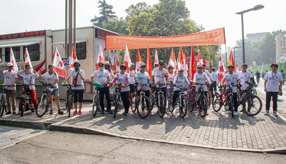 当天上午,来自各单位、各县(市、区)的无偿献血志愿者以及市中心血站的党员志愿者来到我市各采血点开展无偿献血宣传服务活动。 “八号公益”的无偿献血志愿者骑行队身着统一服装,在市政广场献血房车前集结列队、扬旗出发,以公益骑行的方式庆祝即将到来的“世界献血者日”。