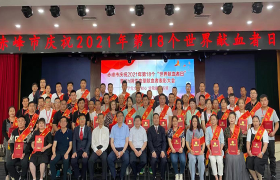 2021年“6.14”世界献血者日前夕,为了庆祝建党百年,颂扬广大无偿献血者的无私奉献精神,激励社会大众积极参与无偿献血,营造无偿献血良好社会氛围。2021年6月11日上午赤峰市庆祝第十八个无偿献血者日活动暨Rh阴性血型献血者表彰大会在赤峰血站报告厅隆重举行。