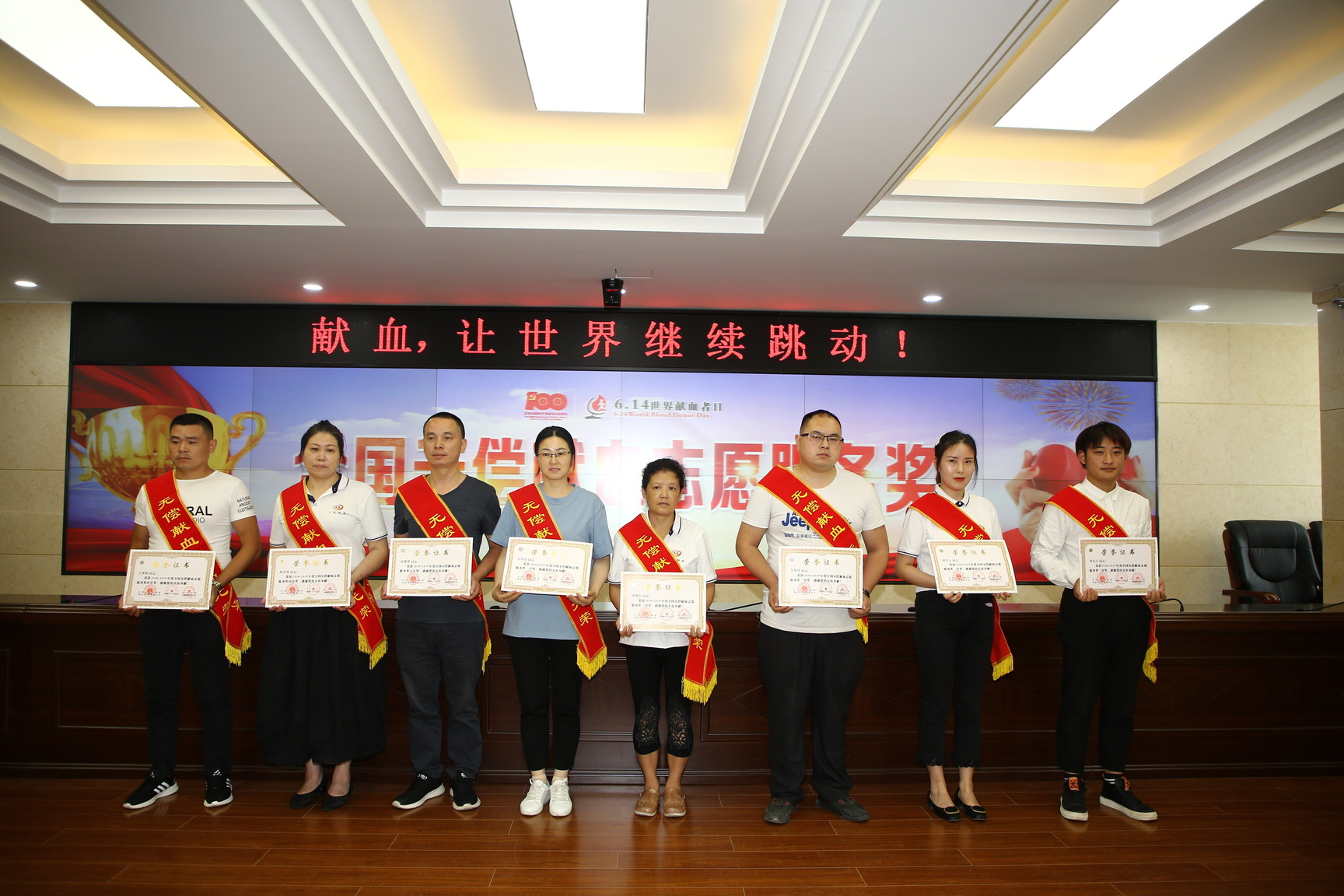 在第18个“世界献血者日”来临之际,广元市召开2021年无偿献血先进表扬大会,现场为获得2018-2019年市级表扬的先进单位、先进个人以及全国无偿献血奉献奖、促进奖、志愿服务奖获得代表颁奖。表扬大会有力彰显了“献血,让世界继续跳动”的主题,大力倡导献血者通过拯救生命和改善他人健康状况,有效激励了广大市民加入到无偿献血队伍的积极性,进一步推动了广元市无偿献血事业更好更快发展。
