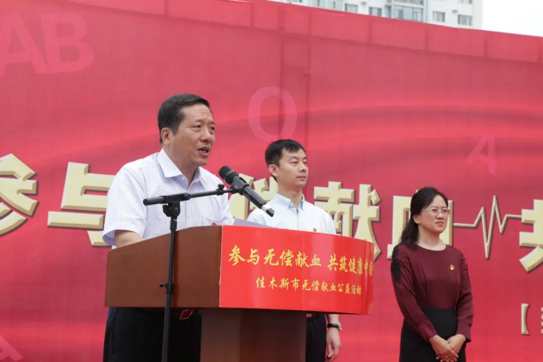 活动仪式上,佳木斯市政府副市长郭雪梅宣布“参与无偿献血共筑健康中国”—第十八个世界献血者日无偿献血公益活动启动。