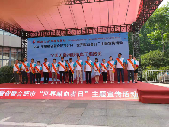 为庆祝第十八个世界献血者日,弘扬无偿献血精神,6月11日上午,2021年安徽省暨合肥市6·14世界献血者日主题宣传表彰活动在安徽省第二人民医院召开。