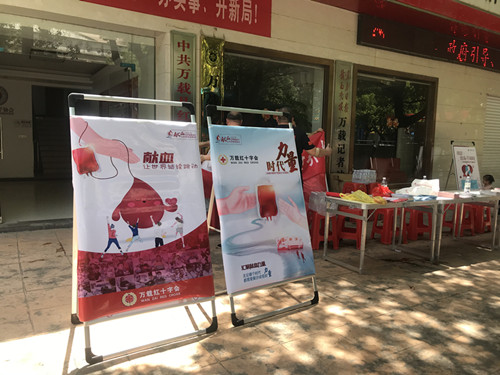 世界献血者日当天,市中心血站党支部书记、站长温玉川同志带领血站党员干部早早来到中心城区春台公园献血屋,拉条幅、摆展架、设现场咨询点,为广大市民进行健康咨询服务,向来往市民发放无偿献血宣传手册及折扇,讲解献血知识。宜春市红十字会、袁州区红十字会的志愿者们也来到活动现场为无偿献血加油助力。