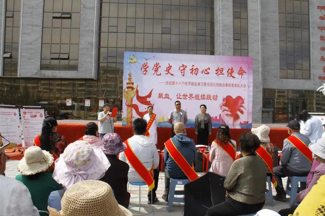 6月11日,由贵德县卫健委主办,贵德县人民医院承办,贵德县中心血库协办的庆祝第18个世界献血者日暨2018—2019年度全国无偿献血奉献奖表彰大会在贵德县政务大厅广场举行。县卫健局副局长孙志强同志、县医院副院长更藏卓玛同志出席活动。现场无偿献血奉献奖获奖代表、贵德县中心血库全体职工及爱心群众参加了庆祝活动。
